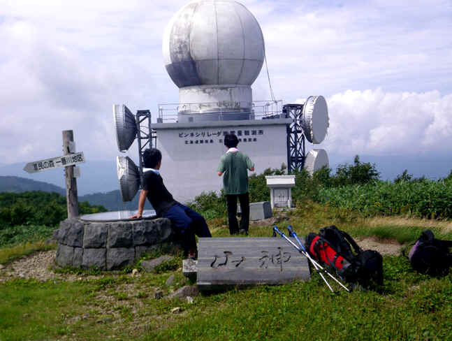 | 大きな気象レーダーが横に立つ、ピンネシリ頂上( numaさん提供 ) |